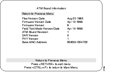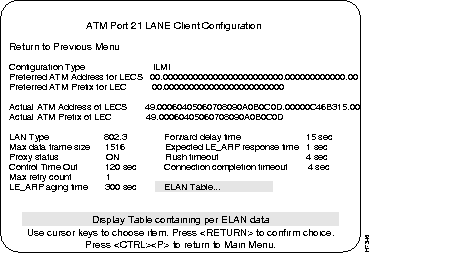 This menu is selected from the ATM Configuration menu. Use this menu to check the configuration information of the LANE Client.