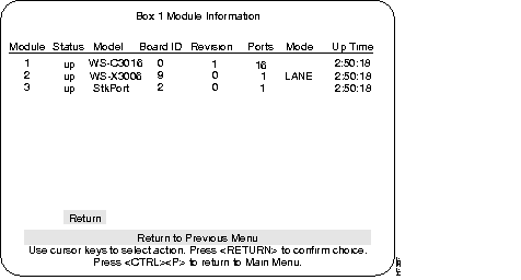 As a reference only, this section lists all of the console menus that pertain directly to the Catalyst 3200 ATM module.