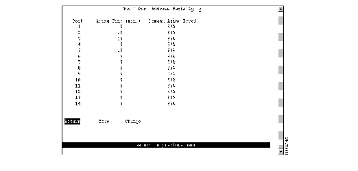 To ensure that the address tables (per port and master) are kept to a minimum size, you can configure an aging limit. The aging limit is used to determine when inactive MAC addresses are removed from the address table. To define address table aging limits, select Address Aging from the Configuration Menu. The Address Aging panel (Figure 5-33) is displayed.