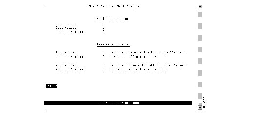 - Exit Ports--Port, if any, that is to receive the filtered packets. This applies only to filters defined as "Allow any packet with the designated Source address to port(s)" or "Force any packet with the designated Destination Address to port(s)."