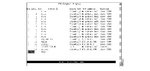To view information about other Cisco devices with which the Catalyst 3900 is communicating via CDP, select CDP Neighbor Display on the Statistics Menu. The CDP Neighbor Display panel (Figure 6-21) is displayed.