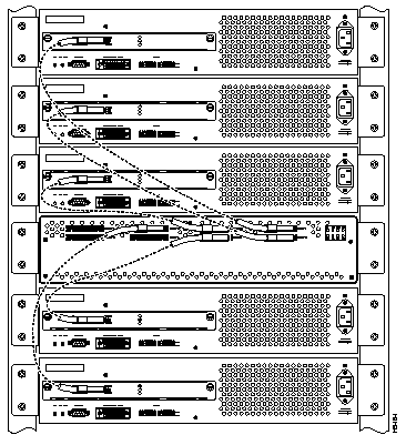 Step 2 Attach the other end of the cable to the Catalyst Stack Port connector on the back of a Catalyst 3000 (See Figure 5-8.) Repeat these steps for each Catalyst 3000 using the next highest numbered Catalyst Matrix port (See Figure 5-9.) In Figure 5-8 the Catalyst Matrix port is shown as the fourth unit from the top.