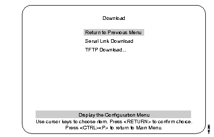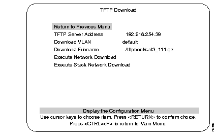 The TFTP Download menu is accessed through the Main Menu. From the Main Menu select the Download Menu and then select the TFTP Download Menu.