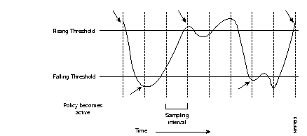 After a rising event is generated, another such event is not generated until the sampled value falls below this threshold and reaches Falling Threshold. See "Creating a New Policy File to Create New Thresholds."