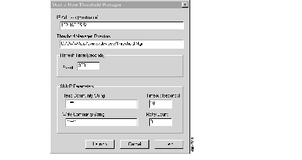 The defaults in this dialog box apply to the current device configuration. You need to set the host address of the device to be managed. You also need to specify the Threshold Manager directory if it is not installed in the default location. The Threshold Manager directory is under the Threshold directory called Threshold-Mgr. For example: