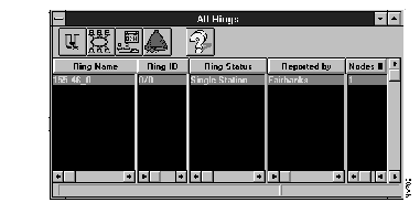 The All Rings window, shown in Figure 2-13, opens automatically when you start Cisco Hub/Ring Manager. You can close it if you do not have any Token Ring networks.