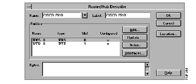 Step 16 Click Interfaces to display the Router/Hub Interfaces dialog box. (See Figure 2-7.)