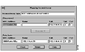 in the Check MAC-to-Port Mapping dialog box automatically scans the database for devices attached to hub ports.