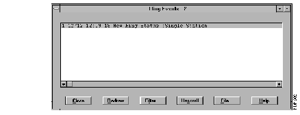| Scroll/Unscroll | Toggles between Scroll and Unscroll. Click Scroll to scroll through the events. The cursor automatically scrolls to the latest events as they are added to the window. Click Unscroll to disable scrolling and enable the screen to be updated with new events. The cursor remains on the selected event even when new events are added to the window. |