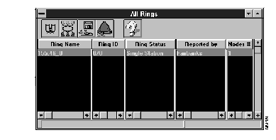 | Ring Name | Displays the name or ID of the ring. The ring name is set in the Describe dialog box for the ring or discovered by Ring Manager. If Ring Manager discovers a ring, it uses a combination of the subnet address and ring number as the ring name (for example, 192.114.4_3F). |