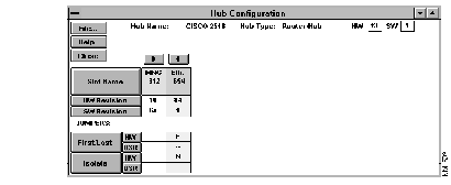 | Hub Configuration | Displays the jumper settings and hardware and software revisions of the modules in a hub. | Hub Configuration |