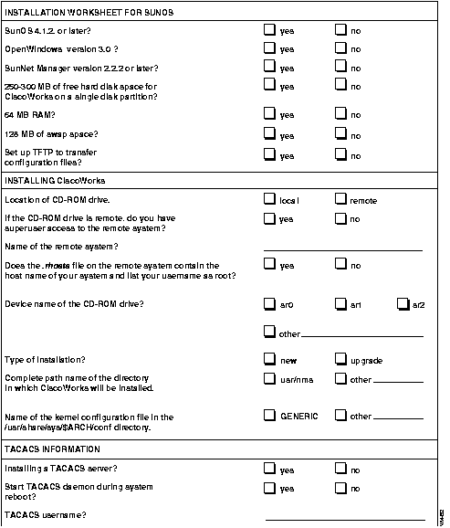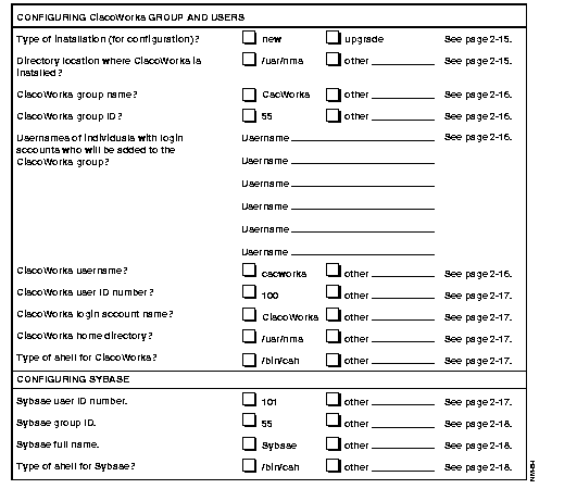 The CiscoWorks Installation Worksheet and descriptions follow. (For your convenience, tear-out worksheets for installation and configuration are provided in Appendix B.)
