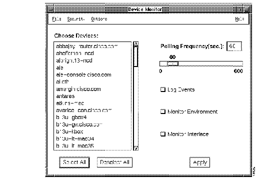 Also use the Device Monitor to set the polling frequency for each device for interface and environment information, or to enable event logging. Because the Device Monitor polls each device according to a set polling frequency, the poll data adds to your network traffic. The default polling frequency rate is 60 seconds. The recommended minimum polling interval depends on the number of devices you are polling and how much network bandwidth you want to devote to network management.