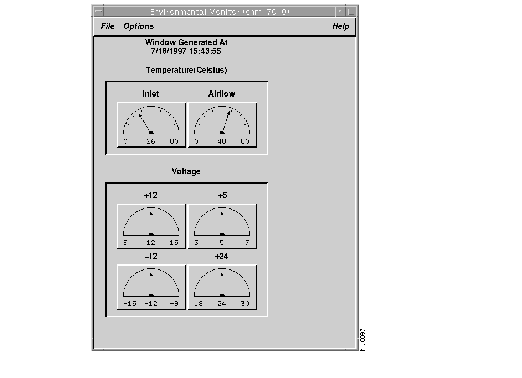 Figure 3-4 illustrates the Environmental Monitor window. Table 3-4 describes its components.