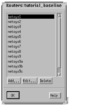Click on the Routers button to display the list of routers associated with the selected baseline, in the Routers window, as shown in Figure 3-3.