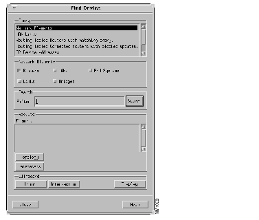 When this Query mode is selected, the Find Device window, shown in Figure 3-8, contains three sets of Topology and Parameters buttons. See "Results - Topology Button(s)" and "Results - Parameters Button(s)" for information about these buttons.
