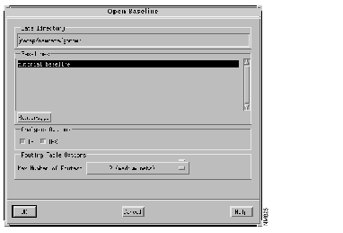 The baselines located in the directory specified in the Data Directory field are displayed in this pane. Select the baseline you want to open from the Baselines list.