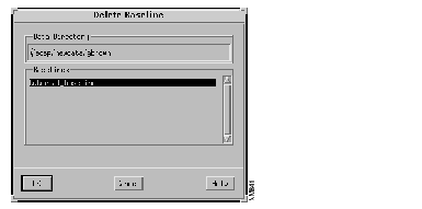 A list of existing baselines found in the directory specified in the Data Directory field are displayed in this pane. Select the baseline entry to be deleted, then click on the OK button. Click on the Cancel button to dismiss the Delete Baseline window.