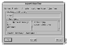 Specify the directory where the new baseline files should be placed in the Destination Directory Go to field then press Return. Navigation through the directories can also be accomplished by double-clicking on an entry in the list of directories. The Selected Directory field displays the current directory either specified or navigated to. The default directory is the location specified by the ECSP_DATA environment variable.