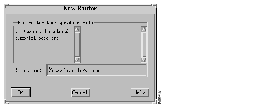 To add a new router to the baseline configuration, click on the Add button. The New Router window, shown in Figure 3-4, is displayed. Specify the location and name of the new router's configuration file in the Selection field, press Return, then click on the OK button. If a router with the same name you are attempting to add already exists in this baseline, you are given the option of replacing the existing router configuration file with the new one. The default path in the Selection field is the location specified by the ECSP_DATA environment variable.