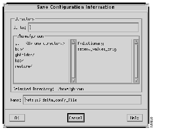 The Save Configuration Information window, shown in Figure 7-13, is displayed when you click on the Save As button in the Configuration Delta-Initial and Configuration Delta-Baseline windows.