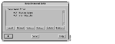 The Requirement Sets window, shown in Figure 7-1, is displayed when a baseline is loaded and the Requirements button in the Connectivity Tools window is clicked.