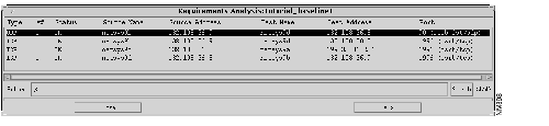 The Requirements window, an example of which is shown in Figure 7-3, is used to add, edit, and delete network connectivity requirements to/from a requirement file set. The Requirements window is displayed in one of the following manners: