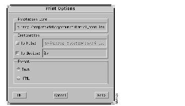 The Print Options window is displayed as shown in Figure 5-3. You can save the report in either ASCII text or HTML format or print the report to a PostScriptTM printer from this window.