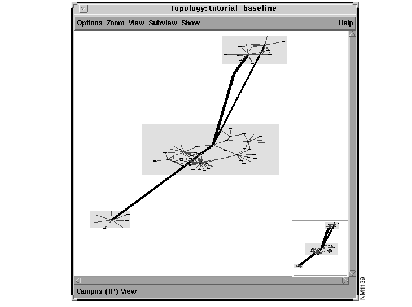 By default, the tutorial_baseline topology is displayed as a campus IP view in the Topology window, as shown in Figure 3-2.