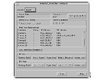 The Router Configuration window is displayed, shown in Figure 3-6. To display the attributes of a LAN element, double-click on a LAN element icon. To display the attributes of a Link segment, double-click on a link segment icon. To make it easier to know when the cursor is over a particular device, the device name or element address is displayed in the Status Bar in the Topology window. When the name/address is present, double-click to display the corresponding Router/LAN/Link/End System Configuration window.