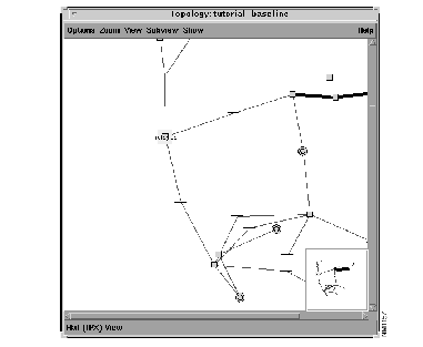 This chapter presents a tutorial describing how to display a baseline topology and how to use the features available in the Topology window. The Topology window presents a visual representation of a network represented by a baseline. The Topology window is used in conjunction with other Connectivity Tools features to accomplish the tasks described in this tutorial. Refer to "Creating and Opening a Baseline" for information on how to create and load a baseline into the baseline model.