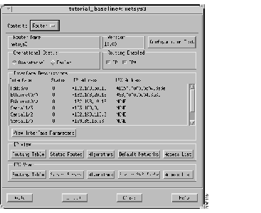 The netsys3 Router Configuration window, shown in Figure 10-12, is displayed. You can also double-click on a netsys3 router entry in the Round Trip Path window or use the Find Device window to display the netsys3 Router Configuration window.