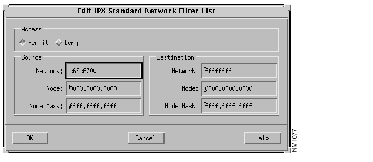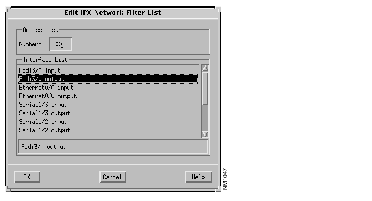 The Edit IPX Network Filter List window, shown in Figure 10-15, is displayed. Create a network filter denying routing updates through the fddi3/0 interface.