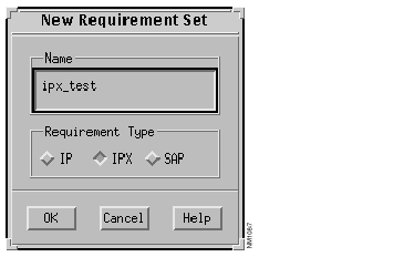 The New Requirement Set window, shown in Figure 10-4, is displayed. A new set of protocol dependent (in this case IPX) connectivity requirements is created and saved to the file specified in this window.
