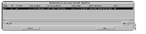 A requirement file set can also be loaded by double-clicking on an entry in the Requirement Files list. The ipx_test file set is now ready to have connectivity requirements analysis performed. The results of the analysis are viewed from the tutorial_baseline Requirements Analysis window, partially shown in Figure 10-8. That is, the status of each connectivity requirement entry loaded for analysis is shown. One existing path was found allowing the connection between the two end systems (netsys8.ether1/2.0.es.ipx.1 and netsys9a.fddi3/0.0.es.ipx.1).