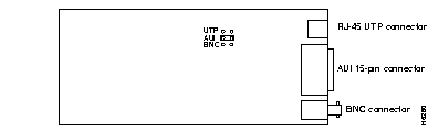 The Ethernet interface supports 10Base5 (Thicknet), 10Base2 (Thinnet), and 10BaseT (UTP). The default configuration is indicated on the rear panel with an appropriate label. The connector for each topology is as follows: