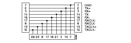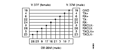 The WAN interface supports connections to V.35, X.21, EIA/TIA 449, EIA/TIA 530, and X.21 with one or two clock sources. The interface has a single port with a 26-pin D-type connector. For each supported connection, you must use an appropriate adapter cable.