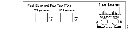 Two LEDs on the front panel indicate power status. The power LED is on when the Fast Ethernet FDX Tap is receiving good power on the corresponding port.