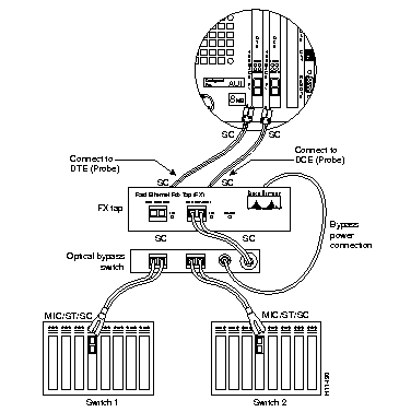 For the highest degree of fault tolerance, you can connect the Fast Ethernet Tap to the network using an optical bypass switch. To do so, see Figure 4-2, and use the following steps.