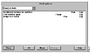 Step 3 To specify an alert when an event in the list occurs, click on that event. Alert Manager highlights the event in the list. To specify alerts for all the events listed, click on the All button. Alert Manager highlights all the list elements.