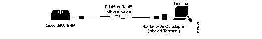 | 3800 ERM Console Port (DTE) | RJ-45-to-RJ-45 Roll-Over Cable | RJ-45-to-DB-25 Terminal Adapter | Console Device | |
