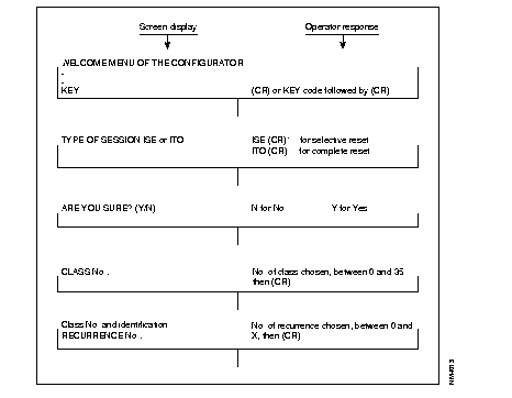 When the KEY code is validated, the "TYPE OF SESSION, ISE OR ITO?" message is displayed to allow the operator to specify the type of reset planned at the end of the configuration session.