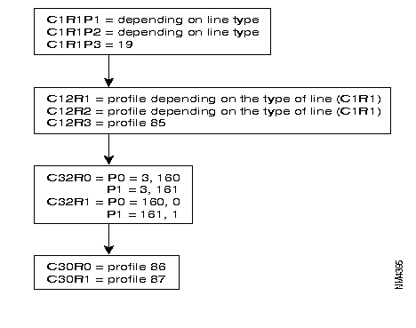 | Profile 4: | Inter node line, receiving clock signals (RC), circuits 114/115. The primary address = 0l and the logical channels are scanned in decreasing order. |