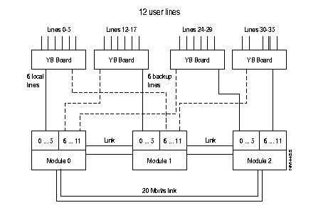 When a module has a hardware failure, the 6 or 12 user lines of the module to be "backed up", are interrupted for a moment and then replaced by the 6 or 12 lines of the "backup" module.