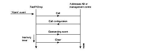 When the alarm function distributes a message, a virtual circuit with the subscriber is established. At the end of an inactivity time-out to configure in C24.R0.P32, the alarm function clears the virtual circuit.