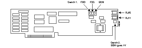 Switch 1: selects FXO, FXS or E&M signalling.