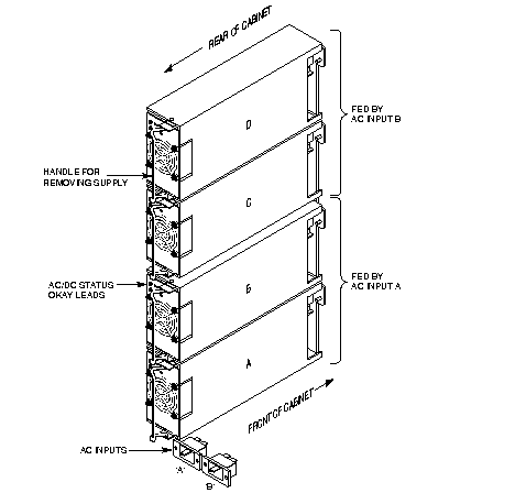 Step 6 Identify which power supply needs replacement. The power supply lettering begins with A on the far left and continues through F on the far right.