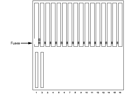 IGX 16/32 Fuse Locations, Front of Early Backplane
