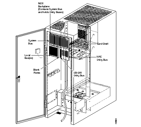 Use of the remaining slots depends on the node configuration. The position of the various utility buses installed on the System Bus backplane determines in which slots the cards can be installed. Figure 2-11 shows the six types of utility buses as viewed from the back of the cabinet. These are the NPC-UB, LB/1, and UB 240 utility buses. Except for the NPC bus, the locations of these buses can vary from node to node.