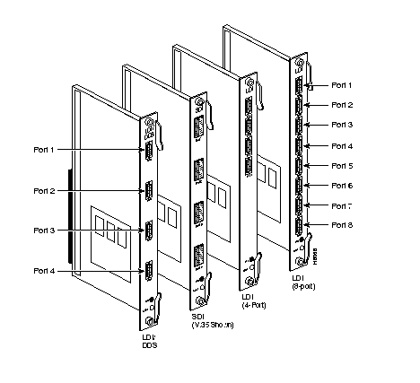 | LDI, RS-232D four-port and 8-port, low-speed data interface, up to 19.2 Kbps., non-interleaved EIA. | |